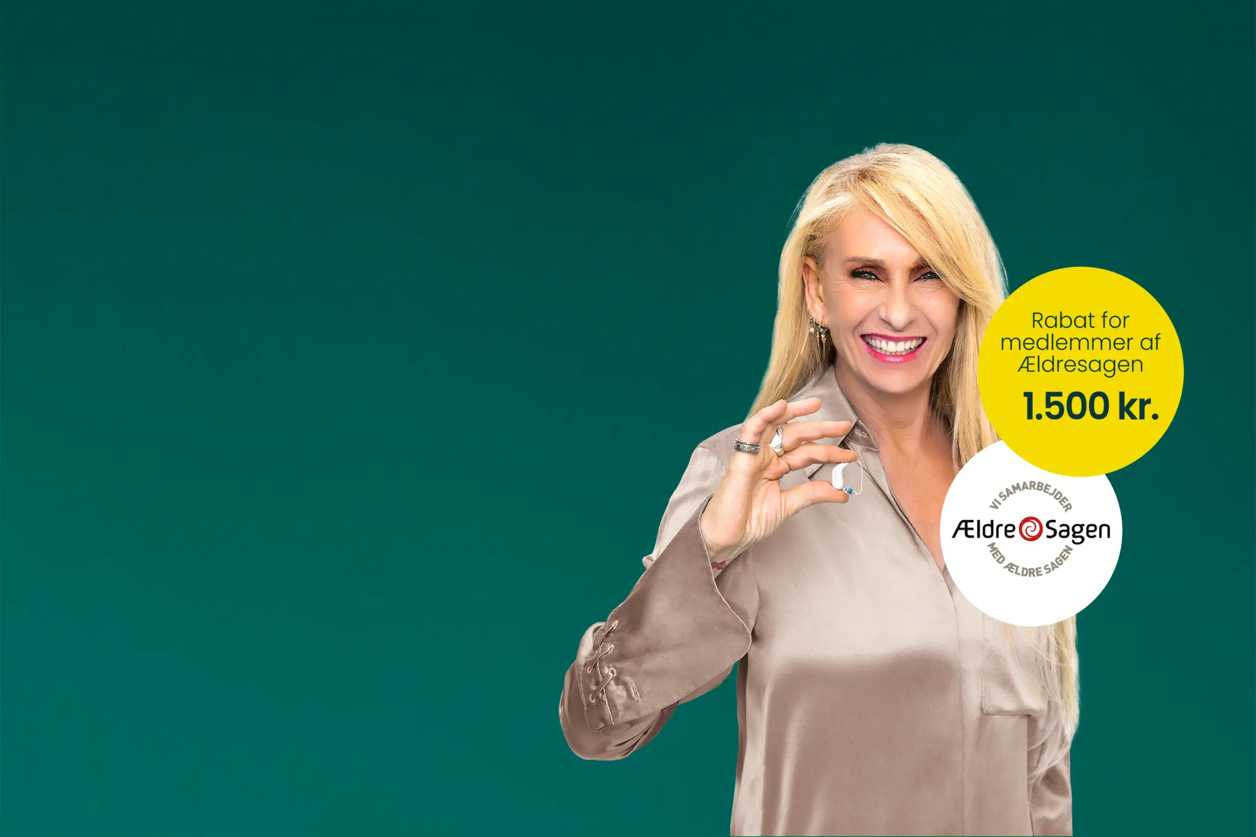 Som medlem af Ældre Sagen får du 1.500 kr. i rabat på køb af et sæt høreapparater.