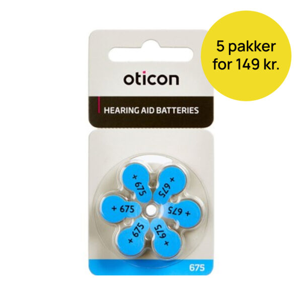 Passer til: Alle høreapparater der bruger størrelse 675 batterier. Kontakt vores kundeservice hvis du er i tvivl. Pakken indeholder:  6 stk. Oticon 675 batterier.