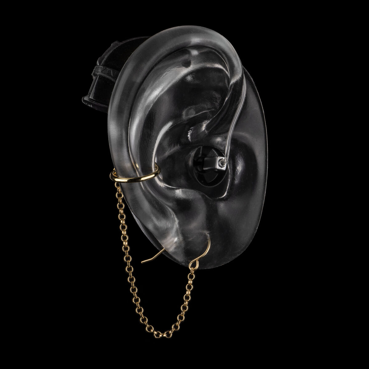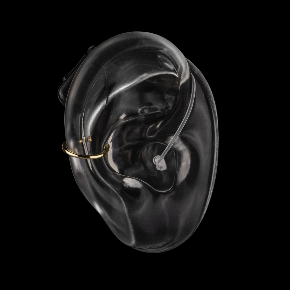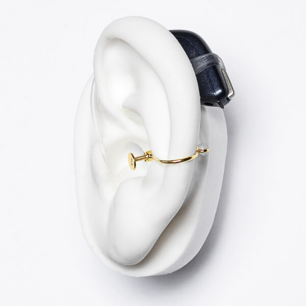 DEAFMETAL Simple Gold er et smykke til dine høreapparater lavet i sølv og er mikrobelagt med guld. Smykket sættes fast til en DEAFMETAL Holder, der er fastgjort til dit høreapparat og sikrer at du ikke taber dit høreapparat.